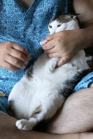 這隻貓咪可比我家拉拉還盧,因為拉拉只要見我媽一開口兇牠,牠就會乖乖原地坐下讓人剪了...我沒養過貓所以對喵星人的體型不太了解,但這隻算胖了對吧?!牠的頭跟身體就跟《神隱少女》裡的「無臉男」暴食時差不多...:P
