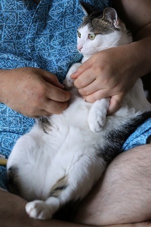 ▼見貓咪漸漸卸下心防,呈現半放棄的狀態時...