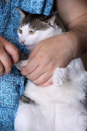 ▼面對貓大爺的不高興,主人也很無奈,但為了大家好還是要剪...